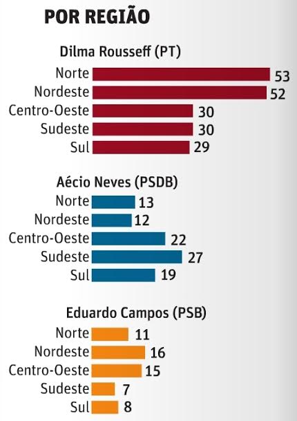 eleitorais do Brasil (São Paulo, Minas Gerais e Rio de Janeiro).O site do instituto descreve assim a situação: “O pré-candidato tucano tem seu melhor índice no Sudeste (27%), onde empata com a petista (30%) na primeira colocação”.