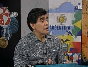 Maradona elogia defesa argentina (Foto: Reprodução)- A Argentina hoje não jogou bem, mas também não deixou a Holanda jogar bem, e isso é importantíssimo. Toda vez que o Robben pegava a bola, tinha ao seu pé o Mascherano. Ele jogou com muita autoridade. Um exemplo dentro de campo se chama Mascherano, todos jogaram seguindo o seu ritmo. Um grande mérito a todos. Hoje, o Messi sentiu um pouco o cansaço, foi marcado muito bem. Quero destacar o bom funcionamento coletivo da Argentina na defesa. Os holandeses queriam chegar ao fundo, e a Argentina não deixou. Perez e Biglia foram bem, encararam o peso que tem a camisa da Argentina. Garay com uma tranquilidade incrível, não perdeu uma bola no alto - disse Maradona.
